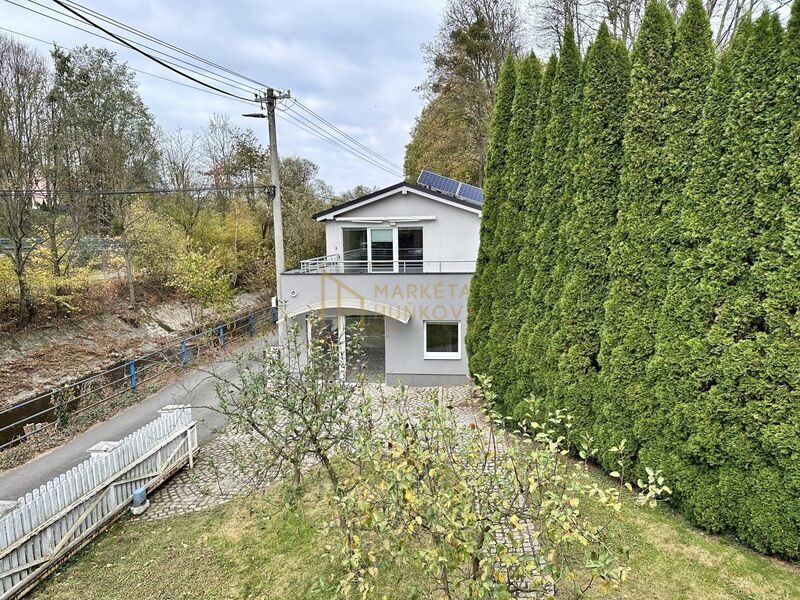 Celý objekt je oplocen vstup do zahrady je přes samonosnou posuvnou obránu
