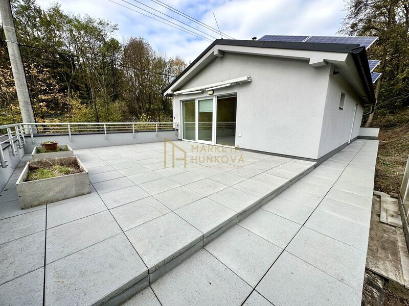 se sprchovým koutem a toaletou. Terasa u horního bytu je osazena venkovními